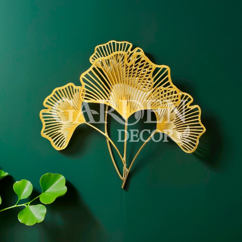 Декор настенный для дома Листья золотые металл 35см 304-304G