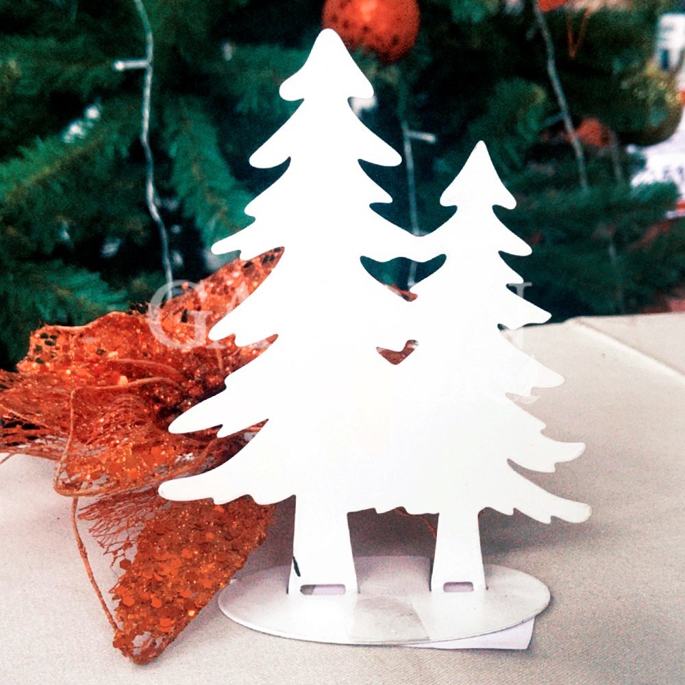 Декоративная фигура Две ели новогодняя металл белый 700-007W