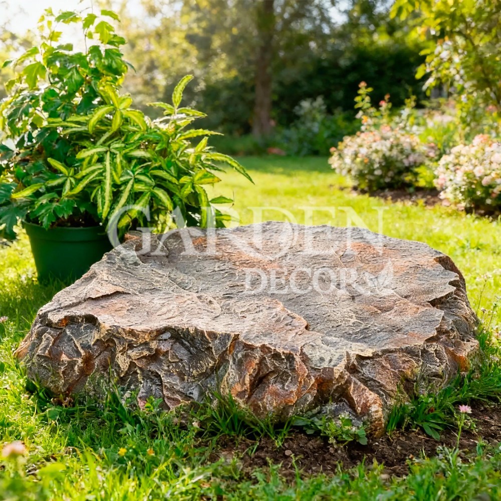 Декоративный камень на люк U09426 — это эстетичное и практичное решение для маскировки выступающих инженерных коммуникаций, таких как крышки септиков, колодцы или кессоны. Изделие выполнено в плоской форме диаметром 60 см, что позволяет аккуратно скрыть технические элементы, не создавая при этом высокого нагромождения на участке.