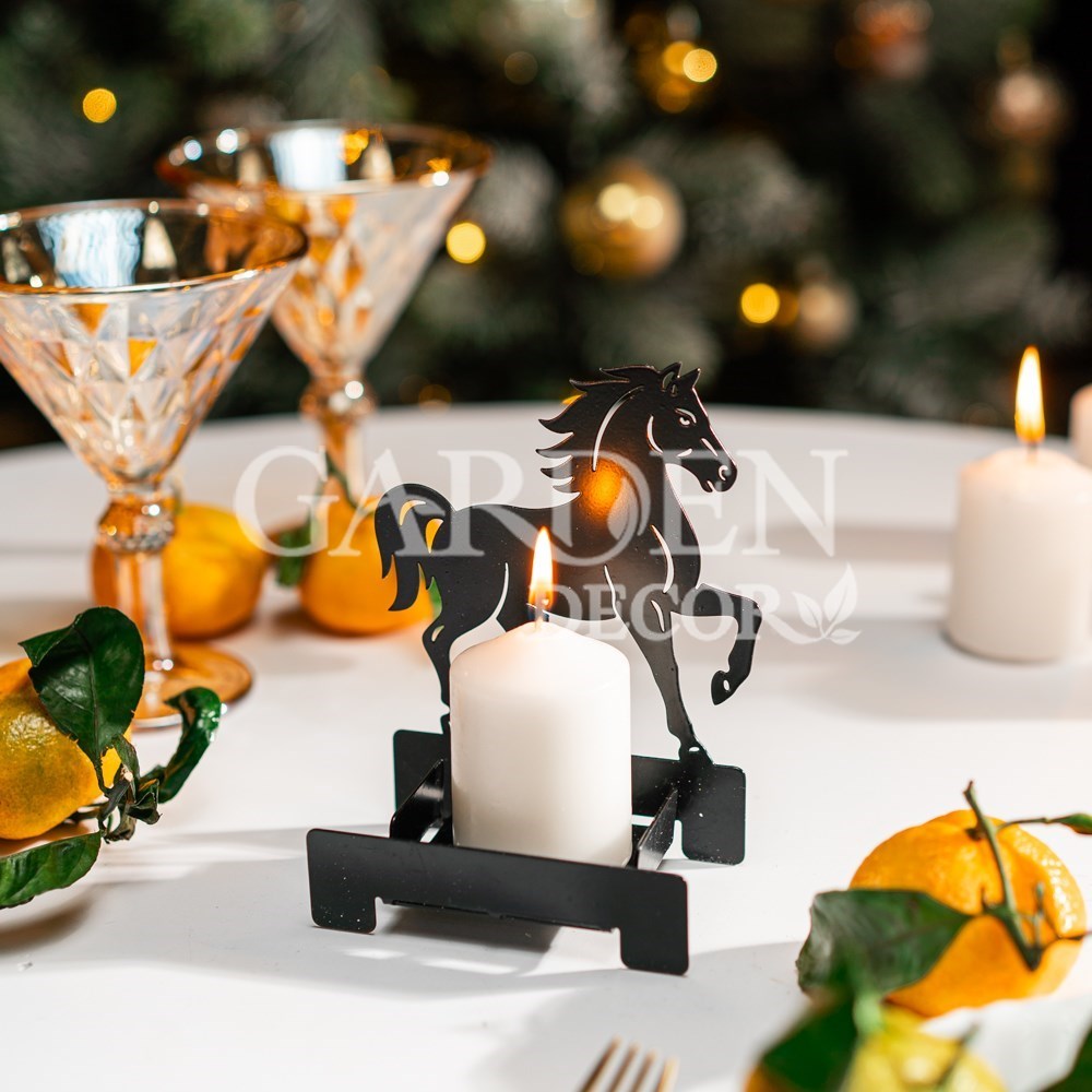 Подсвечник новогодний Лошадь на 1 свечу металл чёрный 730-091B