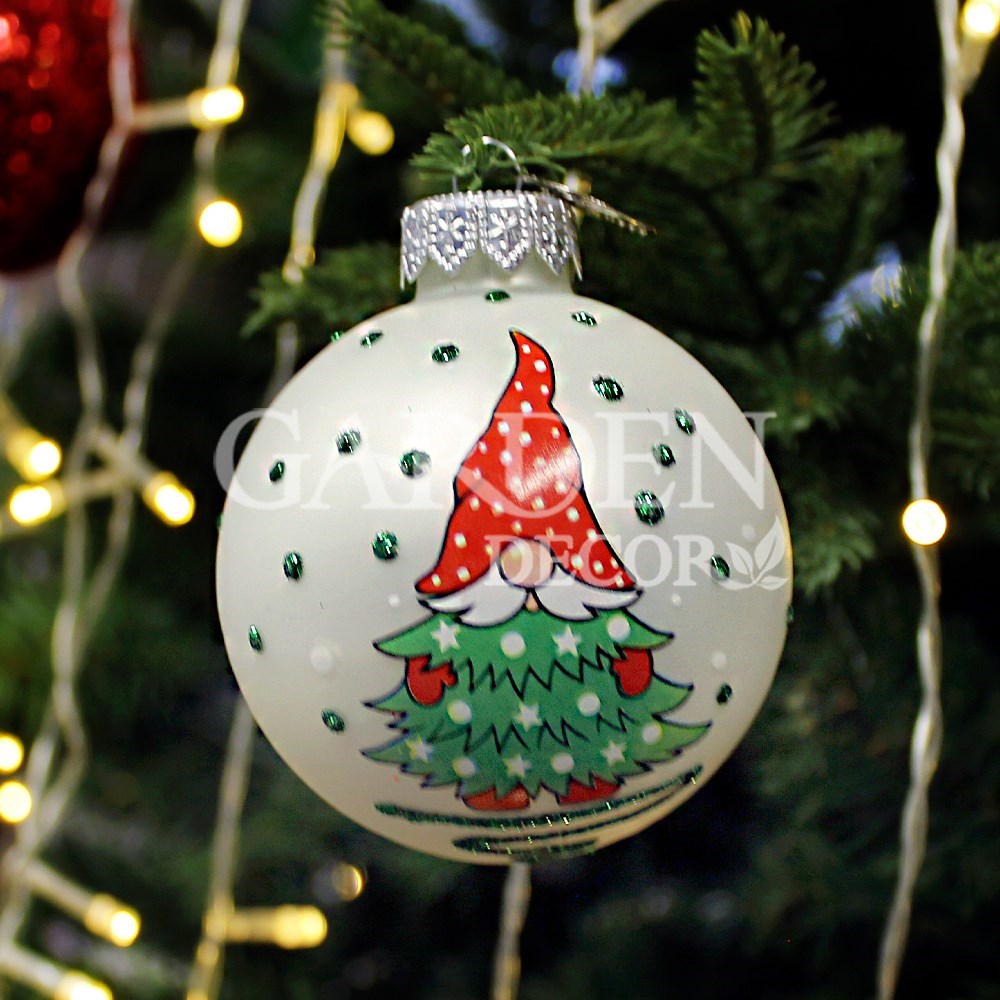 Шар ёлочный Весёлый гном — это оригинальная новогодняя игрушка, выполненная из стекла с ручной росписью. Диаметр шара составляет 6,5см. Новогодние ёлочные шары являются незаменимыми элементами для украшения новогодней ёлки. Они создают атмосферу праздника, добавляют красоты и блеска в помещение и помогают создать уютную и праздничную атмосферу во время новогодних и рождественских праздников. Красочные и яркие шары привлекают внимание и создают радостное настроение. В отличие от пластиковых шаров стеклянные могут прослужить долгое время, сохраняя свой первоначальный вид и блеск. Кроме того, стеклянные шары чаще всего расписываются вручную, что придаёт им особую утонченность и красоту.