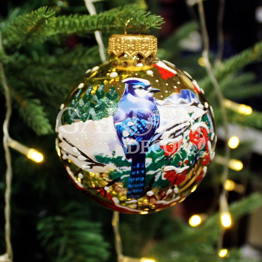 Шар ёлочный Зимние птицы — это оригинальная новогодняя игрушка, выполненная из стекла с ручной росписью. Диаметр шара составляет 8см, шар поставляется в подарочной коробочке. Новогодние ёлочные шары являются незаменимыми элементами для украшения новогодней ёлки. Они создают атмосферу праздника, добавляют красоты и блеска в помещение и помогают создать уютную и праздничную атмосферу во время новогодних и рождественских праздников. Красочные и яркие шары привлекают внимание и создают радостное настроение. В отличие от пластиковых шаров стеклянные могут прослужить долгое время, сохраняя свой первоначальный вид и блеск. Кроме того, стеклянные шары чаще всего расписываются вручную, что придаёт им особую утонченность и красоту.