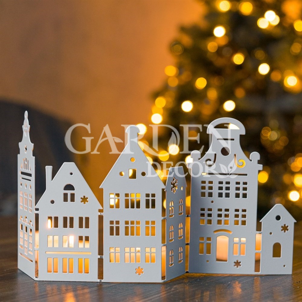 Ширма декоративная Город новогодняя белая металл длина 32см 200-056W