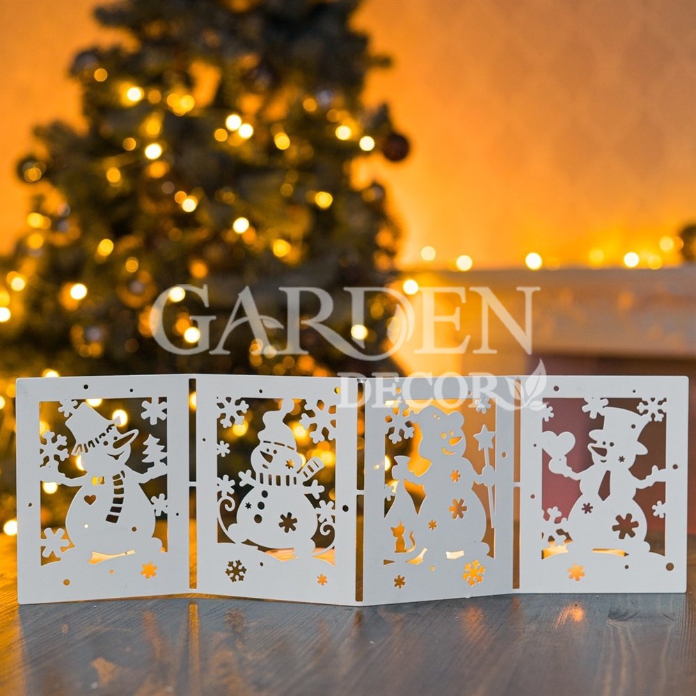 Ширма декоративная Открытки снеговика новогодняя белая металл длина 48см 200-053W